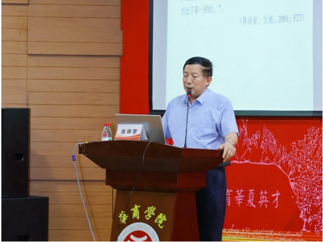 肖坤学教授作题为《释谚从喻,译谚达心——比喻性谚语翻译策略的语言认知研究视角》的主旨发言