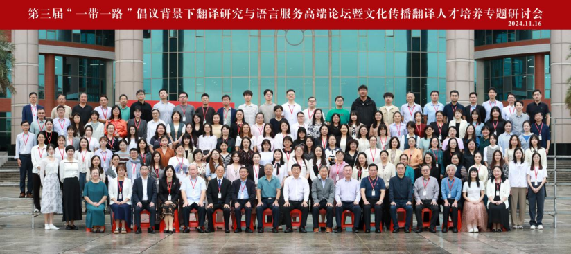 2024年11月15日-16日,由广东省翻译协会和太阳集团tyc4633外国语学院主办,外语教学与研究出版社、复旦大学出版社、外文伯牙国际合作创新发展中心、广东省研思智教技术研究院协办的第三届“一带一路”倡议背景下翻译研究与语言服务高端论坛暨文化传播翻译人才培养专题研讨会在太阳集团tyc4633举行。来自中国科学院科技翻译协会、中国翻译协会、广东省翻译协会、广东省高级人民法院外事办以及国内近30所高校的专家、学者与研究生230余人出席了研讨会。