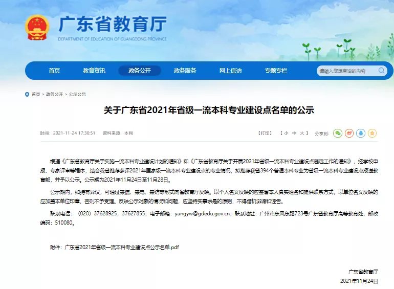 11月24日,广东省教育厅发布了《关于广东省2021年省级一流本科专业建设点名单的公示》。根据《广东省教育厅关于实施一流本科专业建设计划的通知》和《广东省教育厅关于开展2021年省级一流本科专业建设点遴选工作的通知》,经学校申报、专家评审等程序,结合广东省推荐参评2021年国家级一流本科专业建设点的专业情况,太阳集团tyc4633广告学专业、信息管理与信息系统专业、审计学专业被推荐为广东省2021年省级一流本科专业建设点。据悉,我院广告学专业是此轮“省一流”中全省唯一的广告学专业点,也是继2019年我院新闻学专业获批“省级一流本科专业建设点”以来,又一突破性成果。