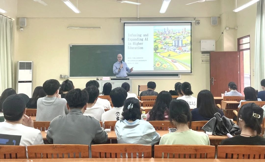 国际招生负责人Yang Zhang与我校“121中美人才培养计划”双学位项目的学生进行了亲切交流。她详细介绍了米勒斯维尔大学的学习、生活环境以及丰富的实习机会,并期待今年秋季与学生在美国校园再次相遇。