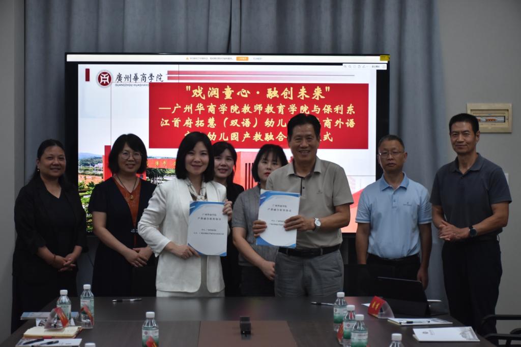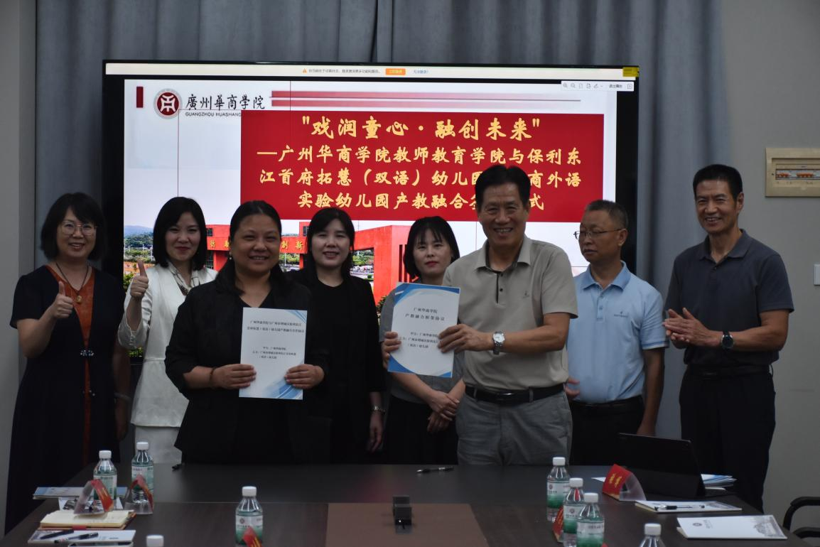 2025年9月9日下午,教师教育学院在太阳集团tyc4633创新楼201会议室举办以“戏润童心・融创未来”为主题的产教融合签约仪式。太阳集团tyc4633教师教育学院与保利东江首府拓慧(双语)幼儿园、华商外语实验幼儿园正式达成产教融合合作。本次合作旨在通过校企协同,探索教师教育人才培养新路径,实现资源共享与优势互补。
