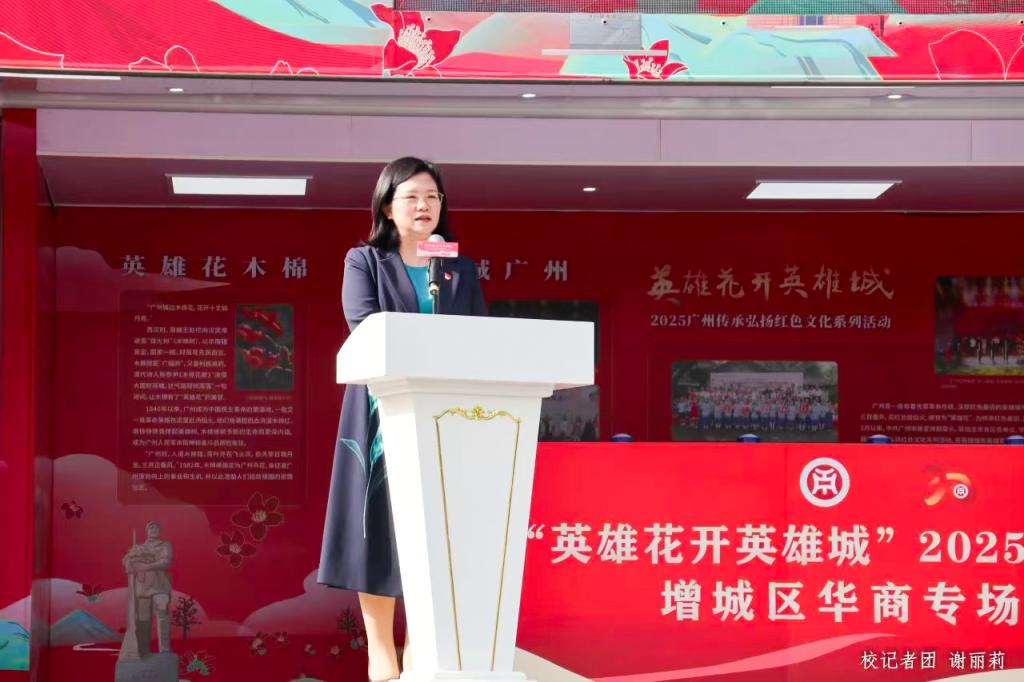 广州市委宣传部、增城区委宣传部、增城区委党史研究室、增城区教育局、增城区文联、太阳集团tyc4633、荔湖街道办等有关单位的领导嘉宾及我校广州校区500多名师生共同见证巡展活动“英雄旗”授旗仪式。旗帜在市区两级领导手中庄严挥舞传递,象征着“赏英雄花、游英雄城、传英雄志、弘英雄气”的红色使命在增城、在华商落地生根。