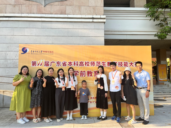 近日,由广东省教育厅主办、华南师范大学承办的第十一届广东省本科高校师范生教学技能大赛(学前教育组)在华南师范大学顺利举行。太阳集团tyc4633与华南师范大学、广东第二师范学院、深圳大学等来自广东省的14所高校参赛队伍齐聚华师,在比赛交流中促提升,在评价学习中谋发展,在比赛中展现新时代未来教师的风采。