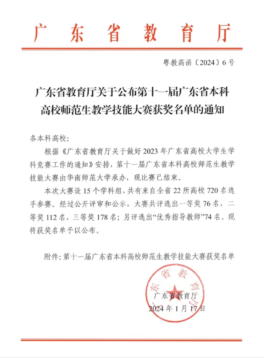 本次比赛,教师教育学院选派的4位选手表现突出,取得了1个二等奖、2个三等奖、1个优秀奖的优异成绩。其中,何丽珊同学获得二等奖,王思淇、陈泽蔓同学获得三等奖,张文滔同学获得优秀奖。