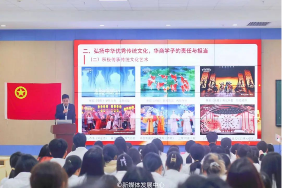 苏宁书记谈到,党的十八大以来,习近平总书记高度重视文化建设,强调宣传思想文化事关党的前途命运,事关国家长治久安,事关民族凝聚力和向心力,是一项极端重要的工作。苏宁书记提出,习近平文化思想指明了宣传思想文化工作的重要意义、任务和使命。他希望华商学子系统地学习传统文化知识,积极传承传统文化艺术,积极践行传统美德,注重创新发展,培养国际视野,承担起弘扬中华优秀传统文化的使命。最后,苏宁书记对华商学子提出殷切期望,希望新时代的华商青年要自觉以习近平文化思想为指引,坚定文化自信,心怀远大理想,矢志不渝地努力奋斗,积极履行文化使命,为努力开创中国特色社会主义文化建设的新局面贡献青春力量。