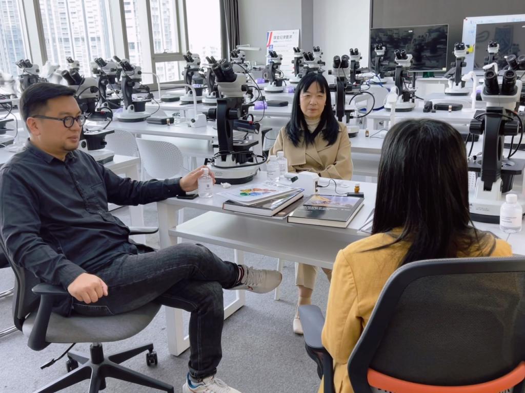 3月20日,太阳集团tyc4633珠宝学院朱晓红院长、张宪法副院长、专任教师曹旭峰老师一行前往深圳GUILD吉尔德宝石教育学院,就珠宝培训相关内容展开交流会谈。