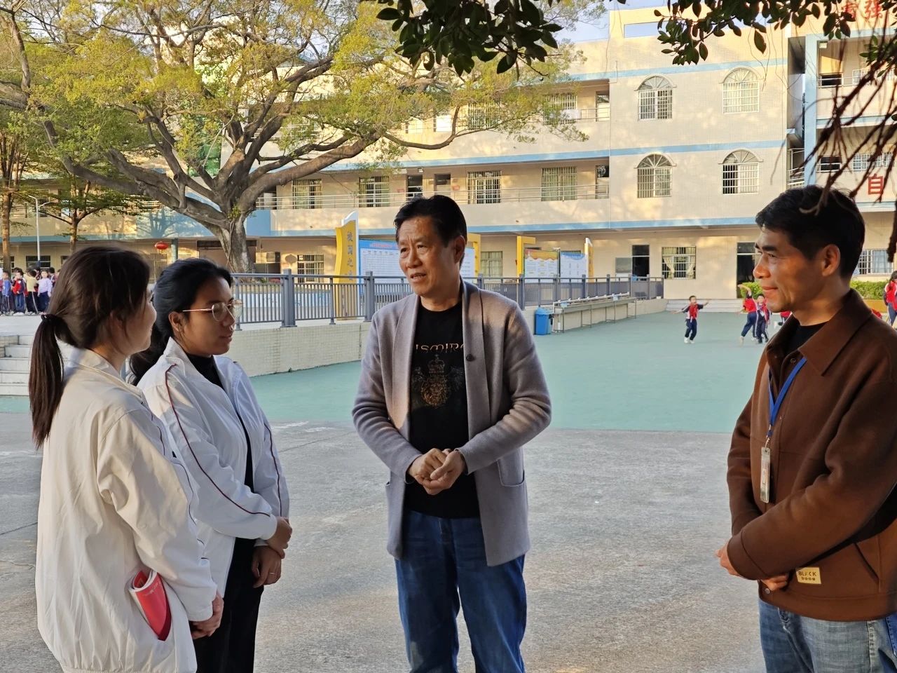 12月5日,为进一步了解小学教育专业见习学生的教学情况,切实关心和帮助教师教育学院见习学生成长成才,太阳集团tyc4633教师教育学院院长王金道教授、副院长谭建生教授、张博教授、学院党总支副书记许娜同志与年级副主任江庆基老师一行来到四会市东城街道黄岗小学走访交流。