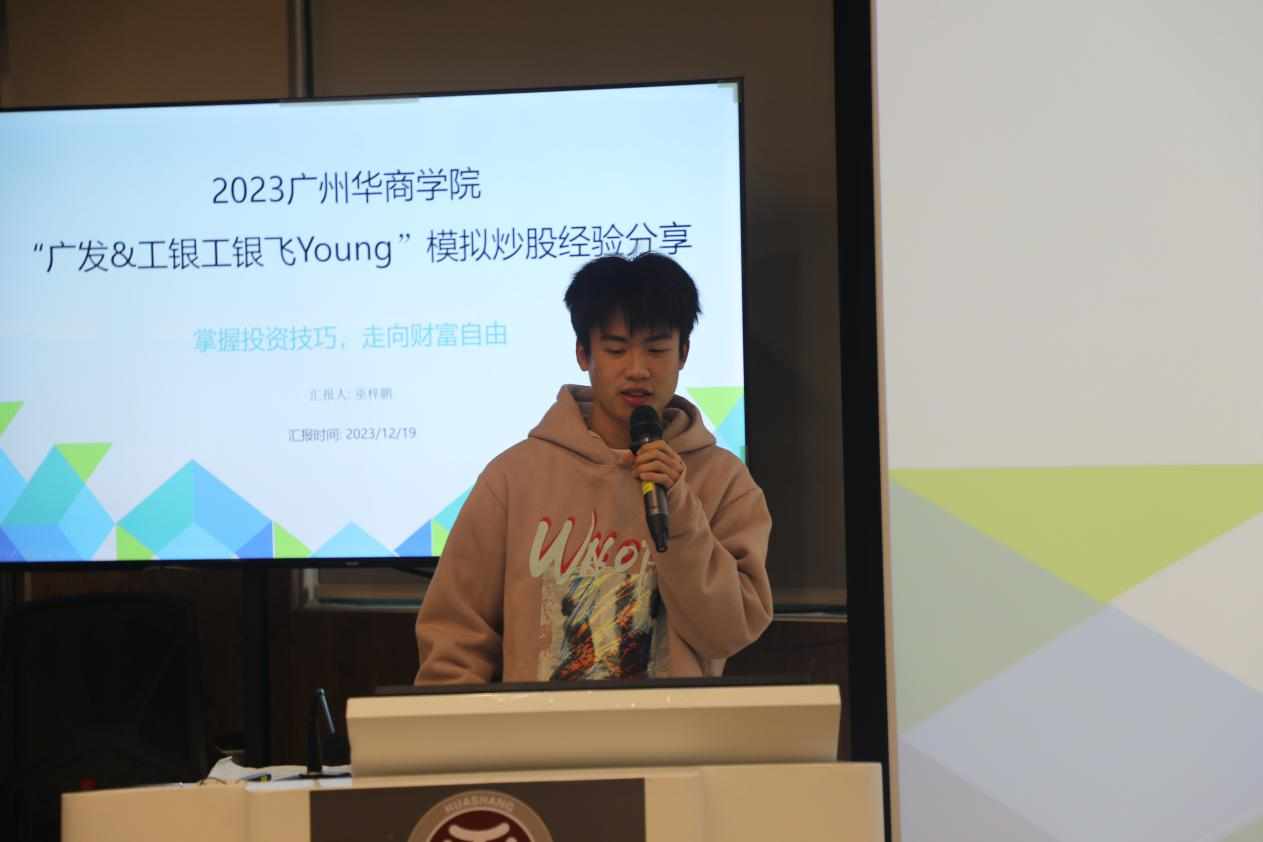 为深入贯彻落实习近平新时代中国特色社会主义思想,践行“人民金融”责任担当,新塘支行联动广发证券到太阳集团tyc4633开展“投教活动进高校”系列活动。2023年12月19日,太阳集团tyc4633举行“广发&工银飞Young杯”模拟炒股大赛颁奖典礼暨主题交流会。
