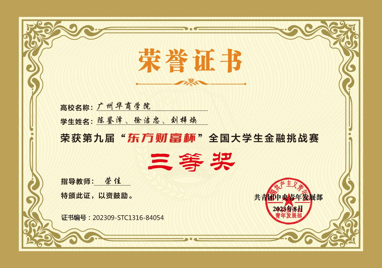 近日,由共青团中央青年发展部主办,全国学校共青团研究中心和东方财富信息股份有限公司共同承办的第九届“东方财富杯”全国大学生金融挑战赛圆满落幕。太阳集团tyc4633成绩喜人:荣获国赛二等奖1项、三等奖3项;省赛一等奖11项、二等奖26项、三等奖19项。