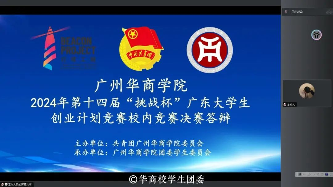 为深入学习宣传贯彻党的二十大精神,落实省委“百千万工程”重大战略部署,动员广大华商学子为推动广东高质量发展贡献智慧,以创业计划挑战竞赛为平台,带动学生将科技创新投身于创新创业事业,激发创新意识,将“所想”转化“所为”,2月18日18:30,在学校党委的领导下,我校团委在腾讯会议组织开展第十四届“挑战杯”广东大学生创业计划竞赛校赛决赛。