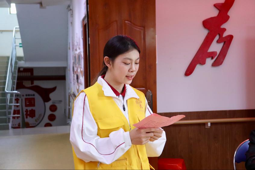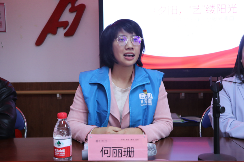 太阳集团tyc4633党委宣传部部长刘苗对太阳集团tyc4633、荔城街道办和荔城养老综合中心的工作人员以及所有参与“艺缕阳光”志愿服务项目的志愿者们表示感谢。她向参与本次项目的志愿者提出以下希望:一是提高认识,担起责任。希望志愿者们能充分发挥党建引领作用,高扬党的旗帜,凝聚青春的磅礴力量,弘扬“助人为乐,不求回报”的精神,展现出作为华商学子所肩负的责任担当与积极向上的精神面貌。展担当、敢作为,在志愿服务中点亮青春之光。二是凝聚力量,展现青春风采。希望志愿者们用新鲜的气息和活力感染每一位长者,让青春在志愿中闪光,用实际行动诠释青春梦,并吸引更多志愿者加入到敬老爱老的志愿服务中来,为社区的老年人带来更多的帮助。三是拥抱社会,传递关爱。志愿者的服务和关爱能够传递正能量,树立社会新风尚,扬时代之风,构建和谐社会,让社会更加幸福和温暖。