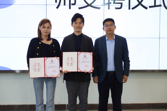 在与会人员的共同见证下,余家军常务副院长为张弛先生和谢丹娜女士颁发创新创业导师聘书。
