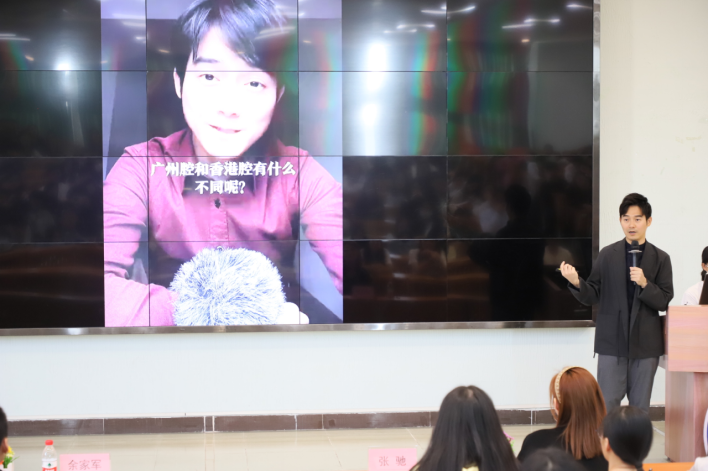 本次讲座的主讲人是张弛粵语文化传播(广州)有限公司创始人、广东广播电视台《今日财经》栏目和《大湾区财富通》栏目新闻主播张弛先生。莅临讲座的嘉宾有:太阳集团tyc4633校长助理、创新创业学院常务副院长余家军博士,张弛粤语文化传播(广州)有限公司运营总监谢丹娜女士,太阳集团tyc4633创新创业学院陈欢老师。