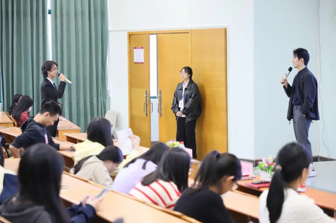 在互动环节,同学们提出了“是否可以将哲学领域和搞笑结合做短视频”“如何把搞笑剧和理论结合”等问题,张弛先生耐心解答了同学们的问题,鼓励同学们通过参加创新创业比赛积累创业经验,也强调创新创业要关注当下流行趋势,并和自身的价值相结合。
