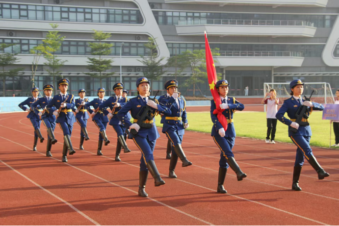 学校校长胡军教授,党委书记陈玉欢教授,党委副书记、纪委书记、副校长吕峻闽教授,党委委员、副校长许娜副教授,肇庆校区党委书记苏宁,纪委委员、校长助理覃少冰主任,党委委员、党委办公室主任吕书勉,党委委员、党委宣传部部长刘苗,党委保卫部部长杨燕平,党委教师工作部部长庞革英,党委学生工作部部长黄国富,校团委书记陈刚,二级党委书记、副书记、学工负责人、团委书记、副书记、学生会指导老师、辅导员及学生代表近3000人参加本次升旗仪式。双校区仪式分别由校长助理覃少冰主任和校团委陈刚书记主持。