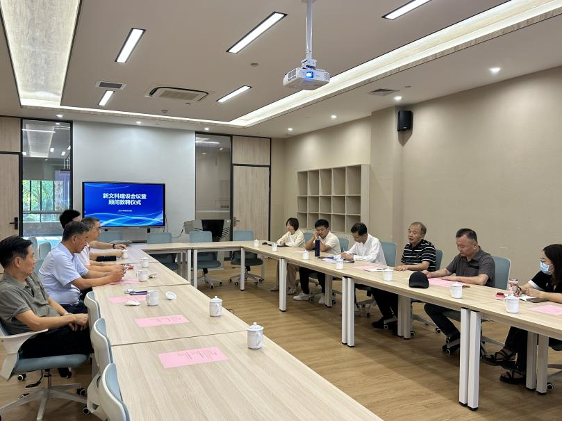 会议分两阶段开展,首先由陈少华教授主持顾问敦聘仪式,宣布聘任朱文教授为新文科建设分委员会顾问,并由王列耀教授为其颁发聘书。