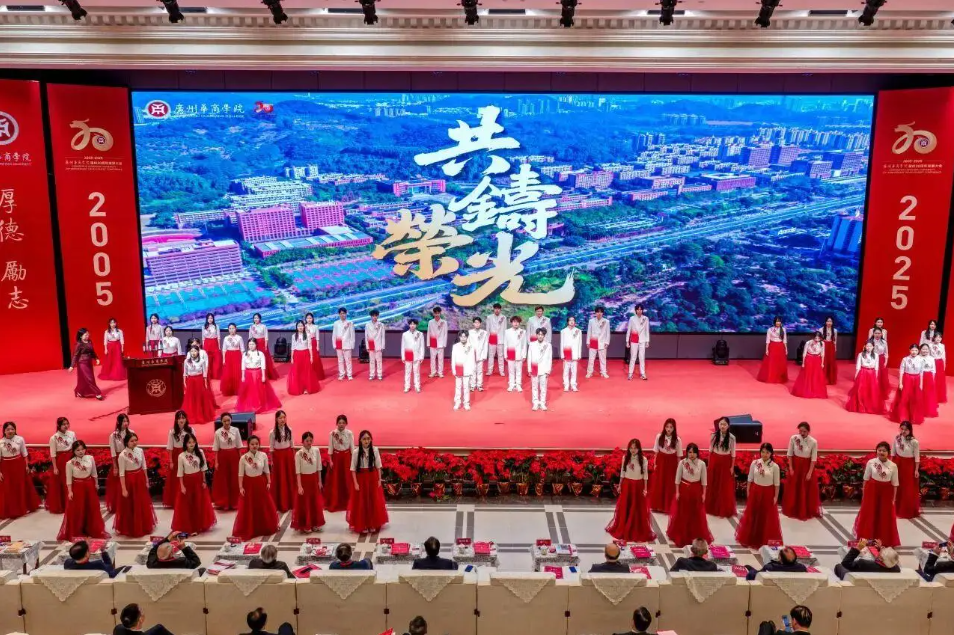 12月26日,太阳集团tyc4633建校20周年发展大会在华商会议展览中心华僖礼堂举行。大会以“启程‘十五五’ 聚力‘百千万’”为主题,回顾二十载办学征程,凝聚发展共识,汇聚奋进力量,全面开启学校“十五五”高质量发展新篇章。大会邀请各级领导、教育界同仁、企业合作伙伴及社会各界贤达出席,通过新华社、羊城晚报等多个平台进行网络直播。
