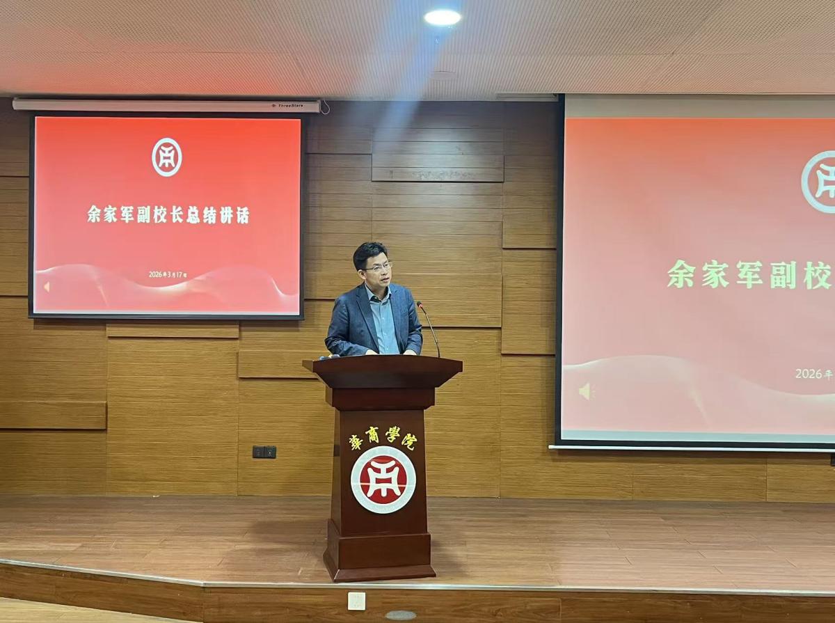 余家军副校长作总结讲话。他指出,2026届全国高校毕业生规模再创新高,就业市场呈现高供给、分化发展的特征,学校就业工作面临严峻挑战,更迎来倒逼人才培养和就业服务提质升级的契机。他对全校就业工作提出要求:一要提高政治站位,压实全员主体责任;二要聚焦市场需求,推动招培就一体化;三要坚持精准施策,落实一学生一实策。希望全校教职工树立大教育观、大就业观,协同发力,以更实举措推动2026届毕业生实现更高质量、更充分就业,让学子们带着“华商印记”自信走向社会、开启人生新征程。