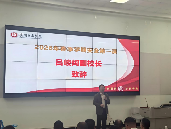 吕峻闽副校长对增城公安、荔湖街道办的鼎力支持表示感谢,强调校园安全是学校发展的生命线,与每位师生的切身利益息息相关。他为同学们送上三大安全叮嘱:一要守好“钱袋子”。不贪小利,遇问题及时找辅导员、用“华商E家”警校联动功能,警务室随时在线护航;二要管好“手指头”。文明上网不越界,不翻墙、不发不当言论,合理表达诉求,共同守护学校声誉;三要坚守三条“线”。道德底线不触碰、学校红线不逾越、法律高压线坚决远离,做守规守法的华商学子。