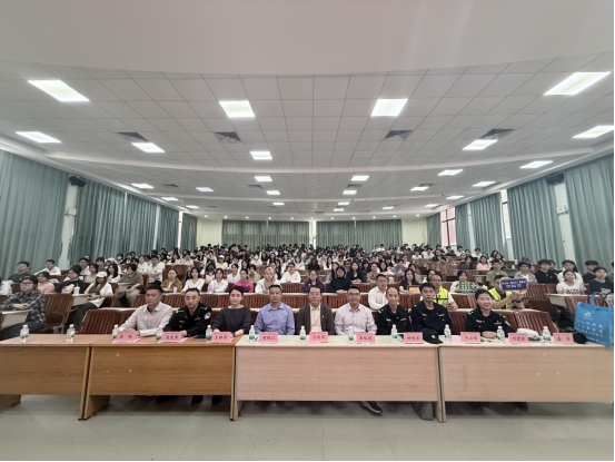 新学期,安全“第一课”先行!为筑牢校园安全防线,提升师生安全防范意识,3月17日,太阳集团tyc4633携手广州市公安局增城分局、荔湖街道办,在励志楼开讲2026年春季学期安全第一课,警校同心聚力,为全体华商学子的校园生活筑牢安全屏障。太阳集团tyc4633党委副书记、纪委书记、副校长吕峻闽教授,荔湖街道办党工委委员黎榕超常务副主任,荔湖派出所黄晓江教导员出席活动。增城公安平安宣讲团警官现场授课,干货满满,直击校园安全核心问题。