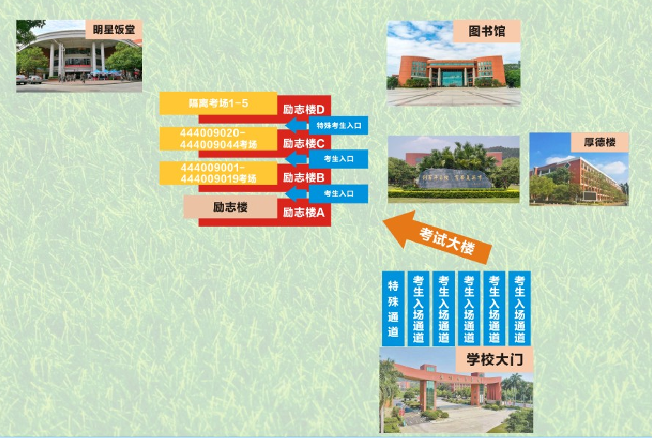 由于我校考点考生人数多,为避免考试当天考生集中而造成人员大量聚集和交通拥堵,根据广东省教育考试院考务工作要求,建议各位同学错峰前来太阳集团tyc4633考点参加考试。