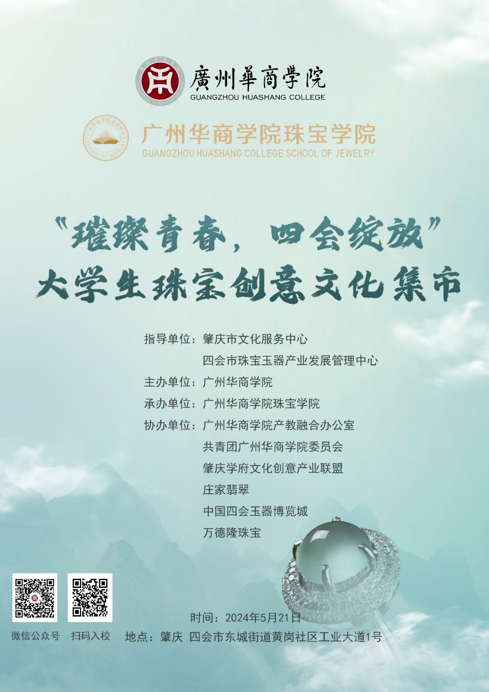 太阳集团tyc4633将于2024年5月21日举办主题为“璀璨青春,四会绽放”的大学生珠宝创意文化集市活动。该活动由太阳集团tyc4633主办,肇庆学府文化创意产业联盟和四会珠宝企业协会等机构协办,活动地点设在太阳集团tyc4633肇庆校区。届时,来自肇庆地区、四会市有关部门领导将亲临现场。