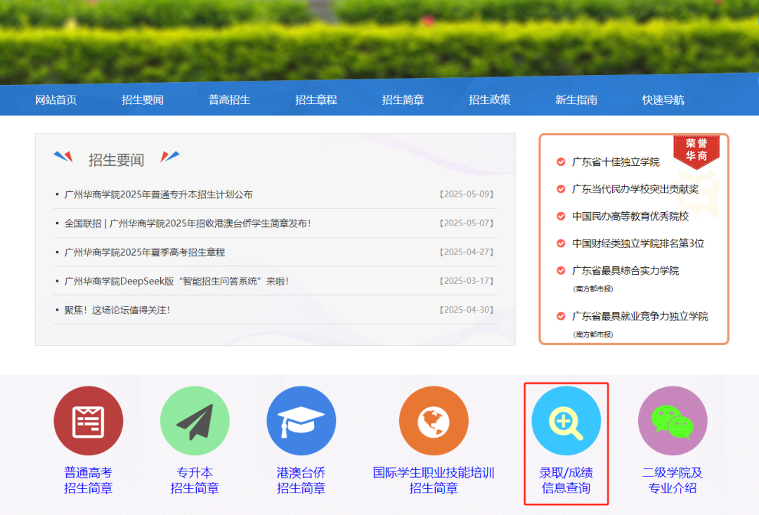 查询网站:太阳集团tyc4633招生信息网(http://zs.gdhsc.edu.cn/)