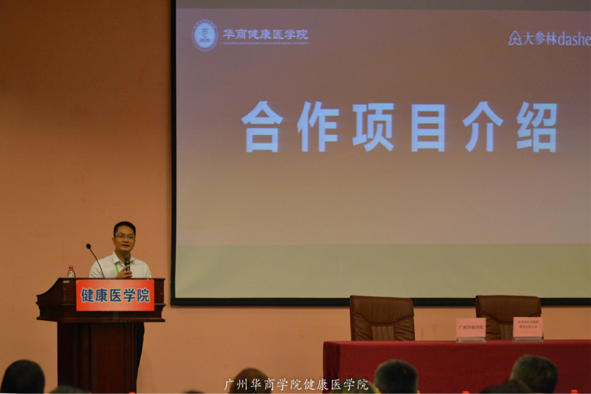 签约仪式上,作为项目的引进人和对接人,健康医学院覃宁老师和大参林人事部何金生经理分别介绍了此次校企合作的背景和具体的合作内容,并重点介绍了模拟大药房的建设规划及对健康医学院办学的重要意义;何经理提出,大参林集团在为健康医学院学生提供校外实践基地的同时,还将为健康医学院的同学设立丰厚的“大参林”奖学金。