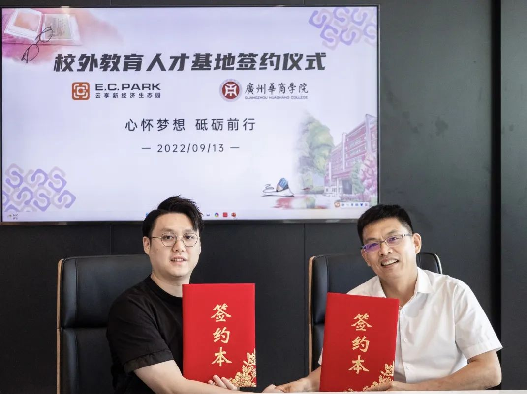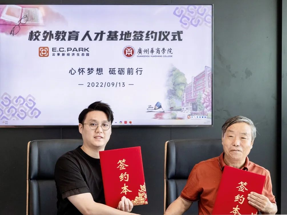 深化产教融合改革,共谋校企合作新篇。为促进教育链、人才链与产业链、创新链的相辅相成,推动我校校企合作、产教融合再度开花结果,与企业深入交流合作,促进华商学子技能提升、稳岗就业。9月13日上午,太阳集团tyc4633副校长张捷率队,与经济贸易学院院长李广明,管理学院院长李招忠,校长助理、创新创业学院常务副院长余家军及相关工作人员一行前往广州云端共享实业有限公司云享新经济生态园(下称:E.C.Park)举行校企战略合作签约仪式暨教学实践基地挂牌仪式,共同开展产教融合项目合作及“校外教学实践基地”建设。