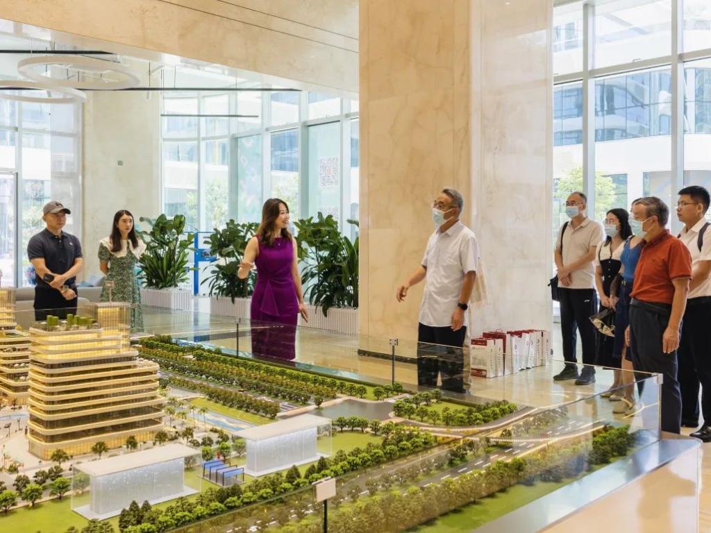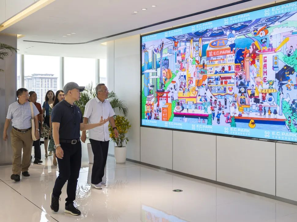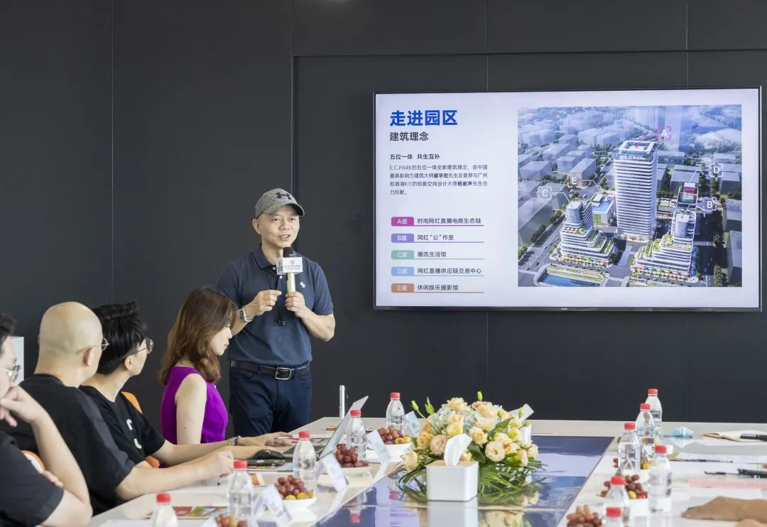 广州云端共享实业有限公司董事长吴智荣、董事CEO汤浩、广州大道文化创意有限公司董事长高锐、抖快点直播商学院执行院长潘院等企业高管代表热情接待我校张捷副校长等一行。在企业代表的带领下,学校领导一行参观E.C.Park园区风情各异的建筑,了解到园区布局以及先进新潮的设计理念,对园区五座建筑对应的功能有了初步认识。