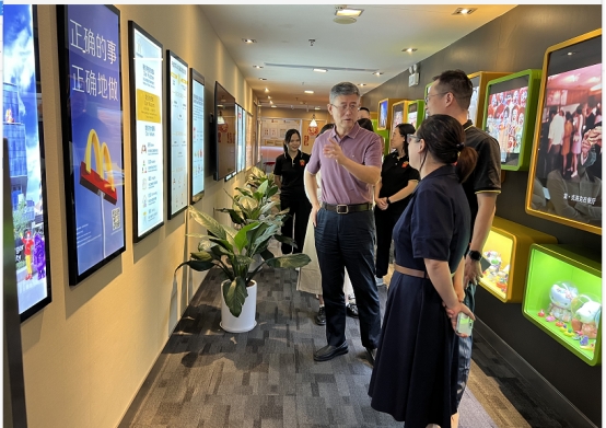 随后,在企业代表的带领下,管理学院一行参观了广东三元麦当劳食品有限公司总部,通过企业文化墙了解到麦当劳中国发展历史、麦当劳培养人才的理念以及职业发展规划,对麦当劳企业文化有了进一步的认识。