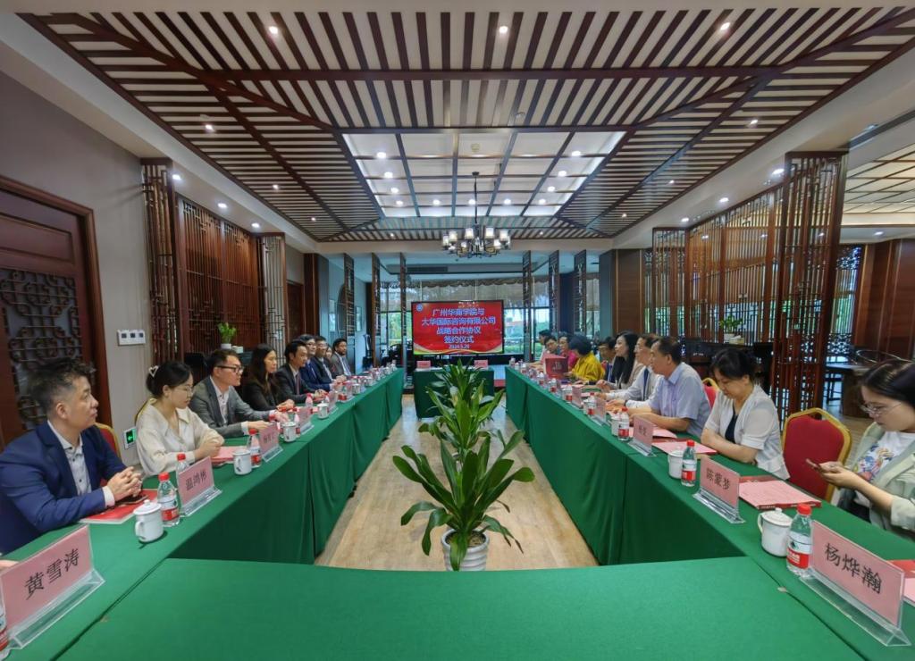 随后,双方举行签约仪式。吕峻闽副校长代表学校领导班子对大华国际董事会精英和高级管理团队表示热烈欢迎和感谢。他详细介绍了太阳集团tyc4633学科特色和教育数智化发展情况。希望校企双方在数智化人才培养、产教融合创新、现代产业学院建设、国际商务服务等领域进行广泛合作,期待合作推陈出新,惠及万千学子,服务好粤港澳大湾区建设和发展。