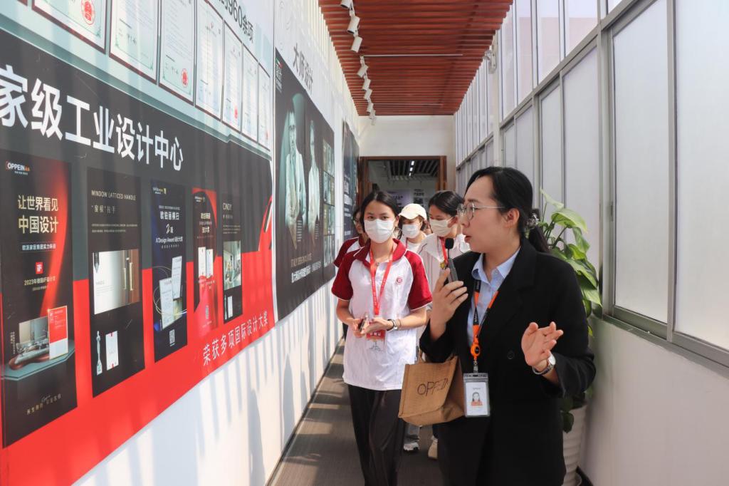 此外,欧派接待人员还带领大家通过沙盘与文化走廊等区域,详细介绍了欧派的全国生产基地、各生产区域的基本情况和实际工作场景,让同学们对欧派的全貌和发展历程有了更全面的认识。