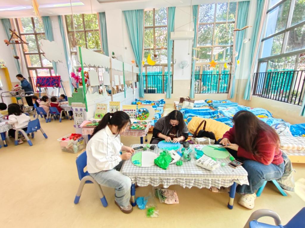 在课程结束后,幼儿园指导教师就学生环境创设情况予以点评和指导,师生就小组开展的幼儿园主题教育活动环境创设情况进行了评价。