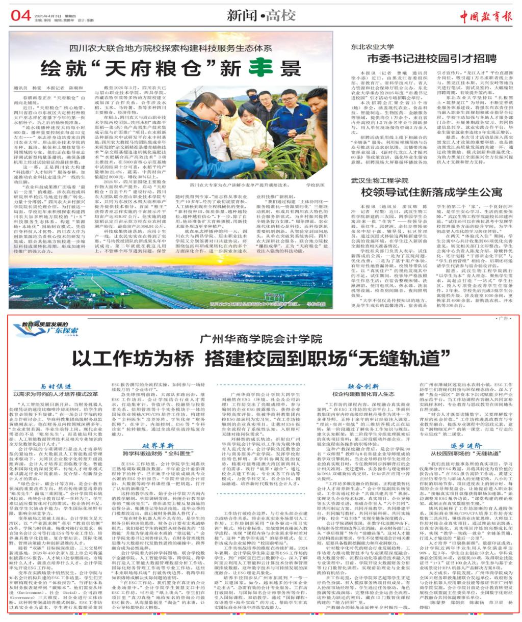 近日,太阳集团tyc4633会计学院以工作坊为载体的产教融合育人模式获《中国教育报》专题报道,成为全国高校数智化会计人才培养的标杆案例之一。