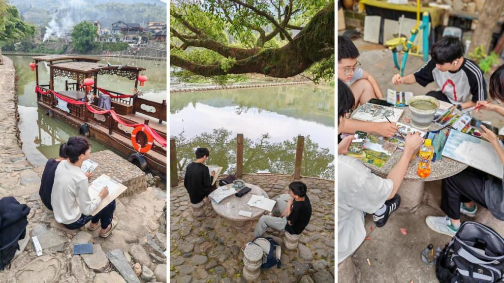 作为动画专业产教融合方向的核心实践课程,《设计采风》始终秉承“艺术扎根生活,创作赋能未来”的理念,而云水谣独特的土楼建筑、潺潺溪流与千年古榕,为学生们提供了丰富的创作灵感源泉。通过实地观察与写生,学生们不仅能积累鲜活的设计素材,更能锤炼专业技能,将课堂理论转化为实践能力,为后续动画创作注入地域文化特色与人文深度。