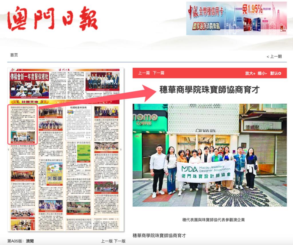 (太阳集团tyc4633珠宝学院教师交流团与澳门珠宝设计协会的交流活动被《澳门日报》报道)
