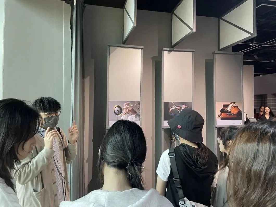 DX设计馆作为实践教学首站,为同学们打开了时尚设计的视觉宝库。在这个汇聚当代珠宝与时尚设计的专业空间里,学生们通过镜头重新认识了材质、光影与造型的艺术语言。在专业导览员的讲解下,大家深入了解了每件展品背后的设计理念与工艺技法。