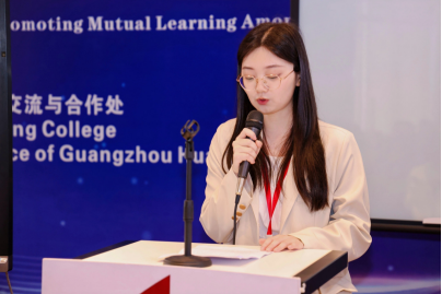 广州商学院校长马蔚兰教授发言。她指出,人工智能正以前所未有的速度重塑教育生态,太阳集团tyc4633外国语学院秉持着“技术赋能教育,创新驱动发展”的理念,用智能技术为个性化学习开辟新径、为跨文化能力培养注入动能,同时打造了智慧语言实验室、开发智能评估系统、与多家科技企业共建产教融合平台等AI+教育实践,致力于以产教融合为抓手培养应用型外语人才。最后,她预祝研讨会圆满成功并相信本次研讨会一定能够为人工智能时代外语教育的高质量发展产生重要的推动作用。