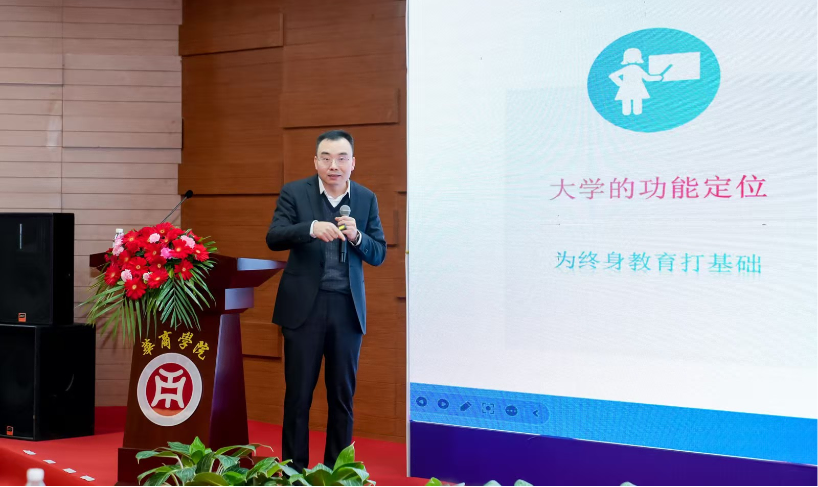 兰艳泽教授在以“数智时代教学改革探讨”为题,强调了变革学习物理环境、学习方式、教学内容、教育评价体系和教育治理等方面的重要性,并提出了会计教学改革的具体探讨。