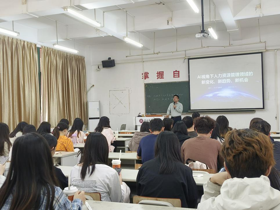 在这个科技日新月异的时代,人工智能正以前所未有的速度影响着各行各业,人力资源管理领域也不例外。2025年3月11日下午,管理学院在励志楼A202举办“AI视角下人力资源管理领域的新变化、新趋势、新机会”专题讲座,本次讲座吸引了众多在校学生的热情参与。讲座由李左声副教授、博士主讲,他不仅是一位在人力资源管理领域深耕多年的学者,更是对AI技术如何重塑该领域有着独到见解的先行者。