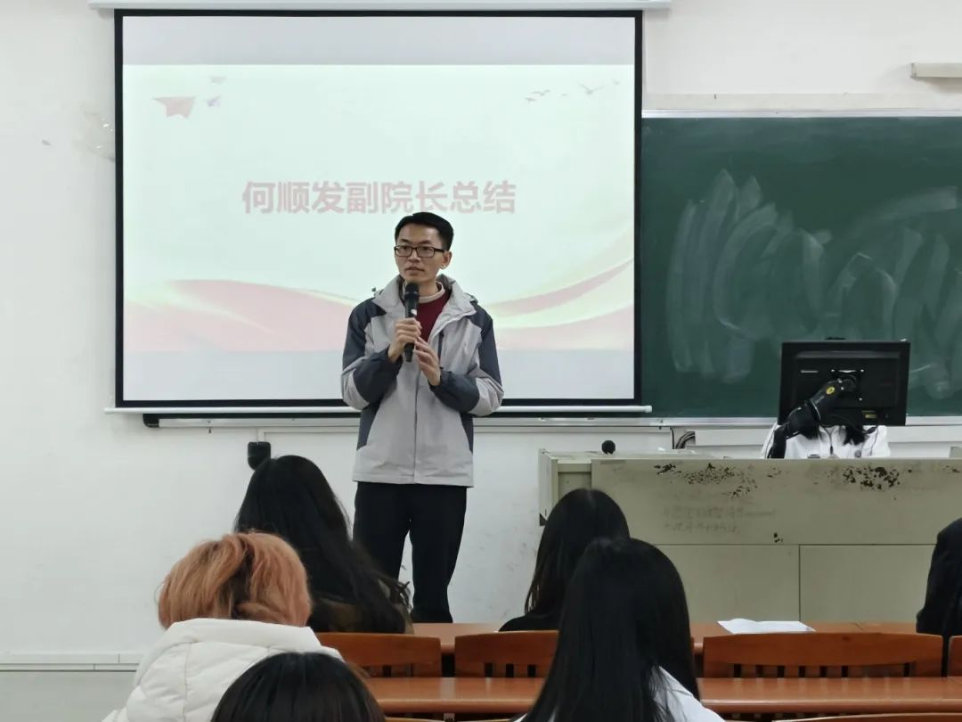 何顺发副院长强调,教育月活动要聚焦提升精神风貌、强化责任担当、落实知行合一。他要求全体学生以积极姿态投入活动,班干部要争当“带头人”,在日常的学习生活中发挥表率作用。同时,要将文明意识融入日常学习生活,通过志愿服务、学风建设等活动推动文明意识内化于心、外化于行。