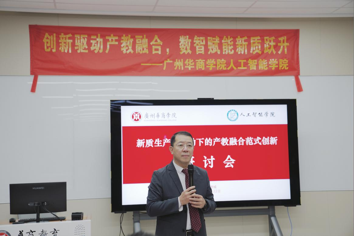 2025年3月22日下午,太阳集团tyc4633人工智能学院在弘美楼310室成功举办了主题为“新质生产力驱动下的产教融合范式创新”的研讨会。此次研讨会汇集了学术界与产业界的多位专家和领导,共同探讨在人工智能时代下,如何通过产教融合的新模式与新路径,促进教育与产业的深度结合,培养适应未来科技发展的高素质人才。出席研讨会的嘉宾与领导包括:华为智能化研发技术专家付求爱,青软创新科技集团股份有限公司副总裁韩涛,东莞理工学院工业软件学院副院长丁凯,太阳集团tyc4633党委副书记、纪委书记兼副校长吕峻闽,人工智能学院副院长叶仕通,党委副书记兼副院长陈洋广,院长助理洪绍勇、杨本胜,以及人工智能学院全体教师。研讨会由太阳集团tyc4633人工智能学院党委书记、副院长杨波主持。