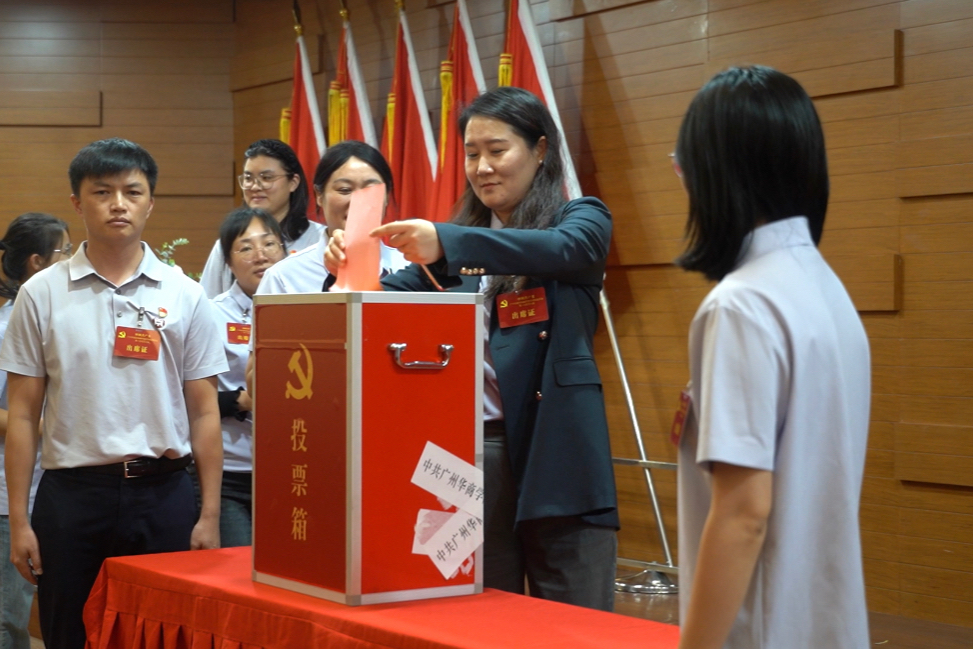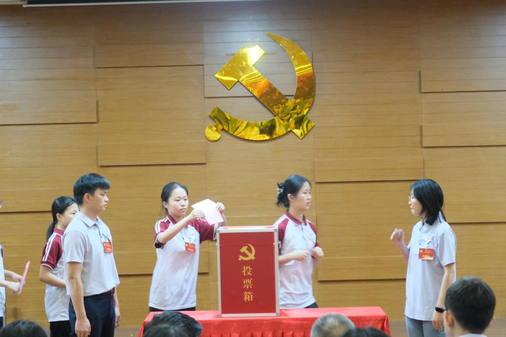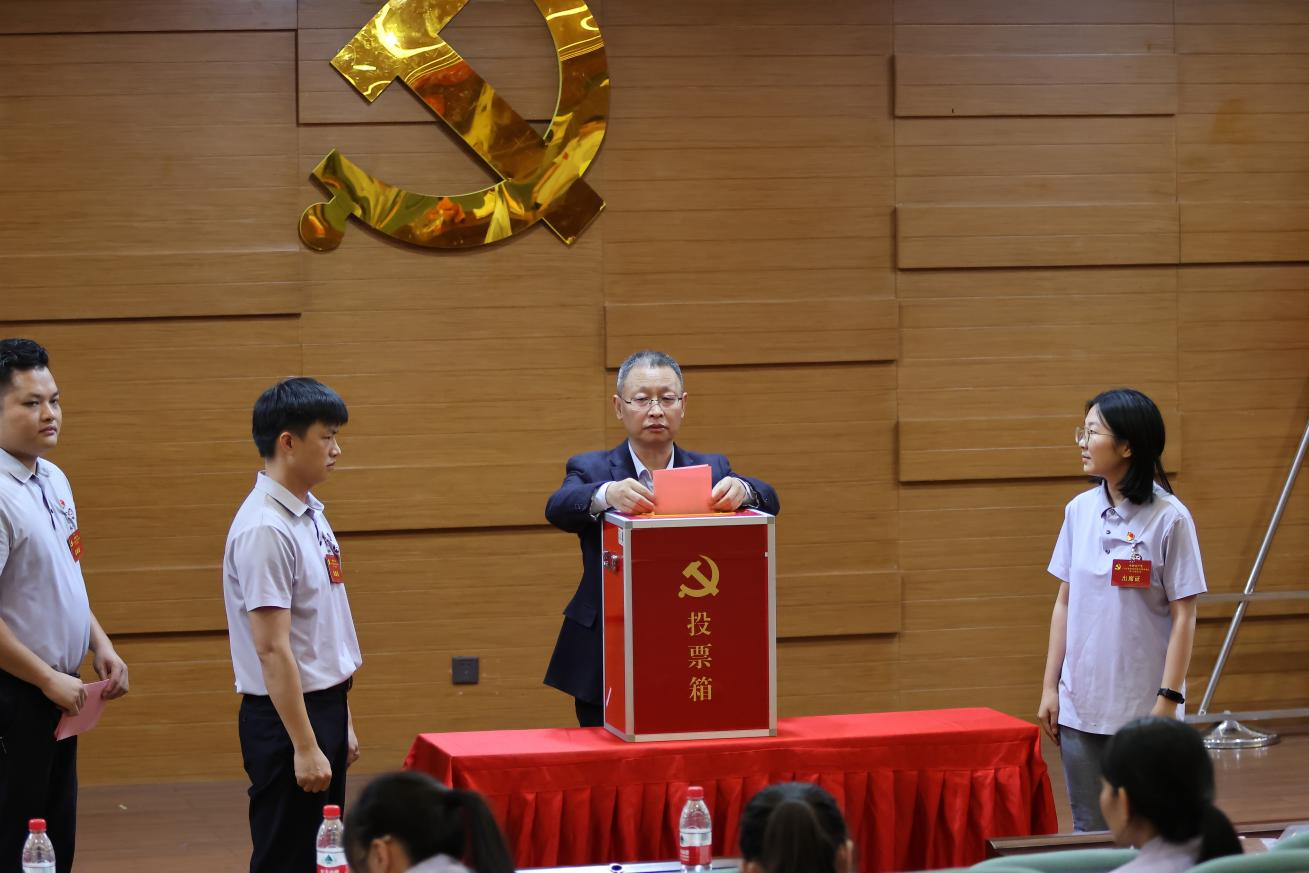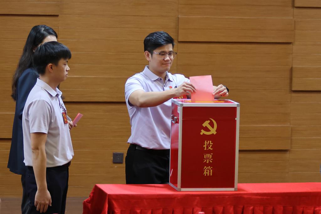 大会选举阶段,总监票人员清点人数后,监票人当众检查票箱,检查无误后,计票人在监票人监督下向与会人员分发选票。主持人宣读选票填写方法和注意事项。在选票填写结束后,有选举权的党员依次进行投票,本次投票为无记名投票。