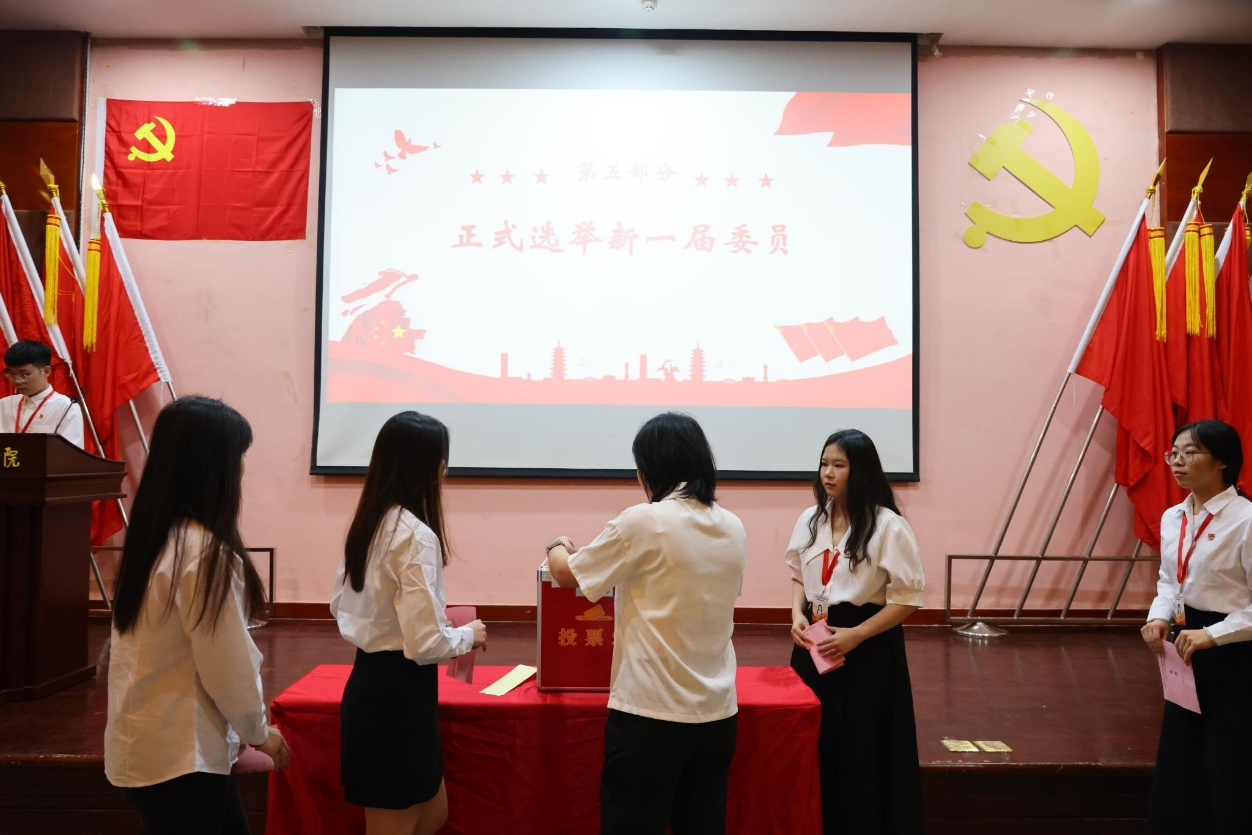 总监票人任欣鹭同志向大会报告计票结果,主持人何威义同志宣布新当选的委员名单。新当选中共太阳集团tyc4633管理学院委员会委员的是:张丽娟、陈纯华、郑丽芬、袁仕海、潘思媚(按姓氏笔画为序)。