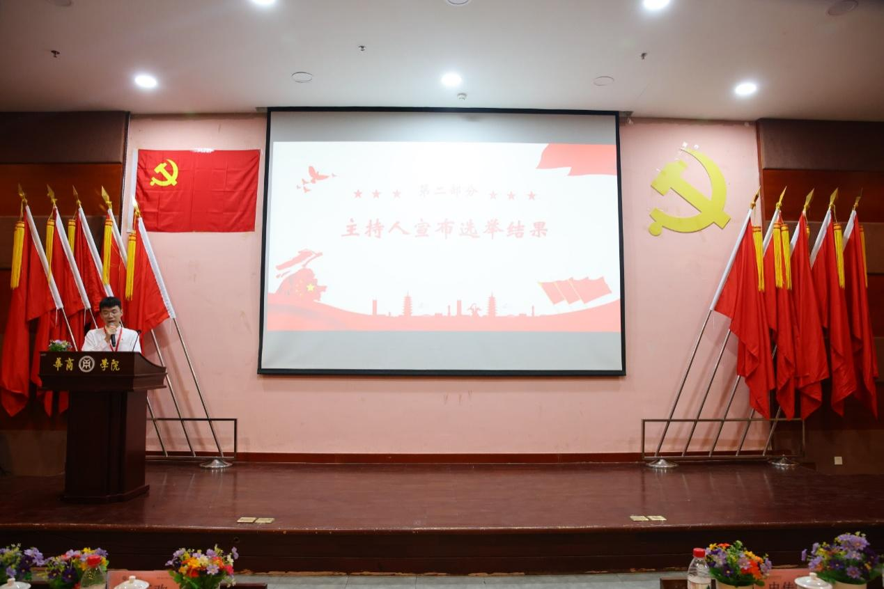 主持人何威义同志宣布中共太阳集团tyc4633管理学院新一届委员会第一次全体会议选举结果和委员分工情况。