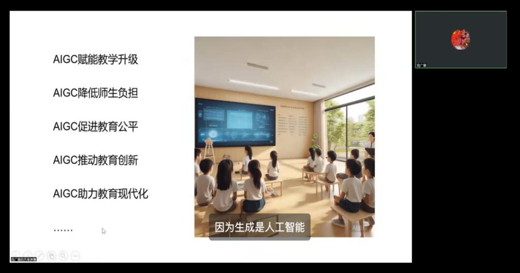 在讲座中,肖广德副教授详细介绍了人工智能的发展历程、基本概念以及在教育领域的多样化应用。他通过丰富的案例分析,展示了人工智能如何通过个性化学习平台、智能辅导系统、自动化评估与反馈、虚拟实验室与模拟教学等方式,改变传统的教育模式,提高教育效率和质量。此外,肖副教授还特别讨论了生成式人工智能在教育中的应用,如AI创作儿童故事和AI助力故事配图、连环画等,这些内容不仅拓宽了同学们的视野,也为教育工作者提供了新的教学思路。
