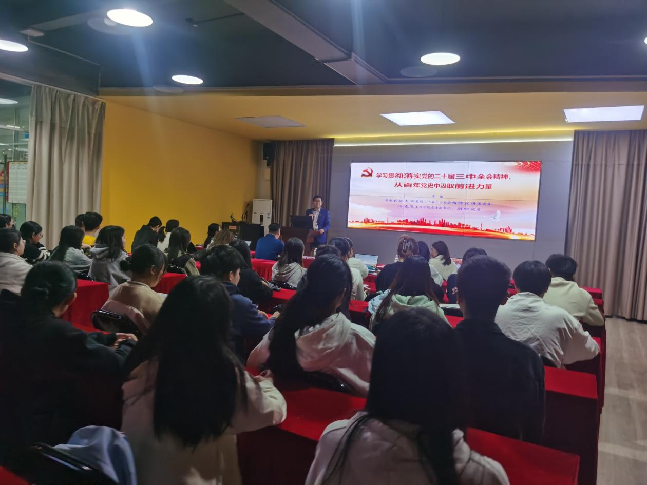当晚,会计学院开展以“学习贯彻落实党的二十届三中全会精神,从百年党史中汲取前进力量”为主题的专题讲座。李敏老师以毛泽东诗词为线索,带领大家穿越时空隧道,感受革命先辈的崇高理想与坚定信念。字里行间流露出的磅礴气势与浪漫情怀,不仅加深了对党史的理解,也激发了师生的爱国热情与历史责任感,使大家深受启发,心潮澎湃。