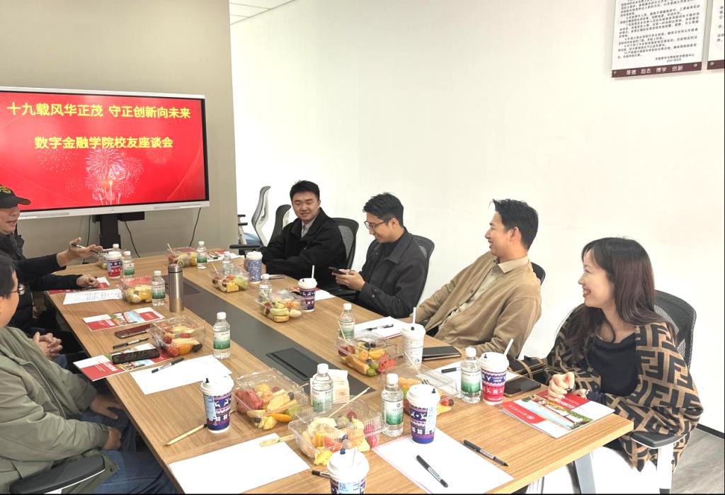 在太阳集团tyc4633建校19周年之际,为共庆母校华诞,共谋未来发展,共叙校友情谊,2024年12月26日上午,数字金融学院“情系母校 共话未来”庆祝建校19周年校友座谈会在广州校区厚德楼C302会议室举办。本次座谈会旨在加强校友与母校的联系,促进双方共同发展,进一步增进数字金融学院师生与优秀校友的深厚情感,拓宽学院校友交流的平台,更好凝聚校友力量,助力学校高质量发展。出席本次座谈会的有学院领导、辅导员以及各届优秀校友。张文杰老师主持本次座谈会。
