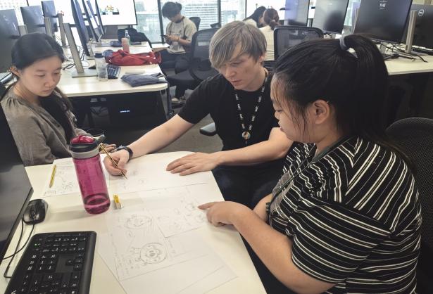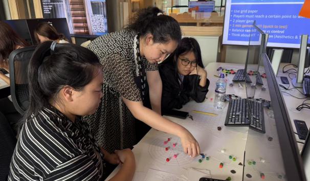 (学生进行游戏设计实践)